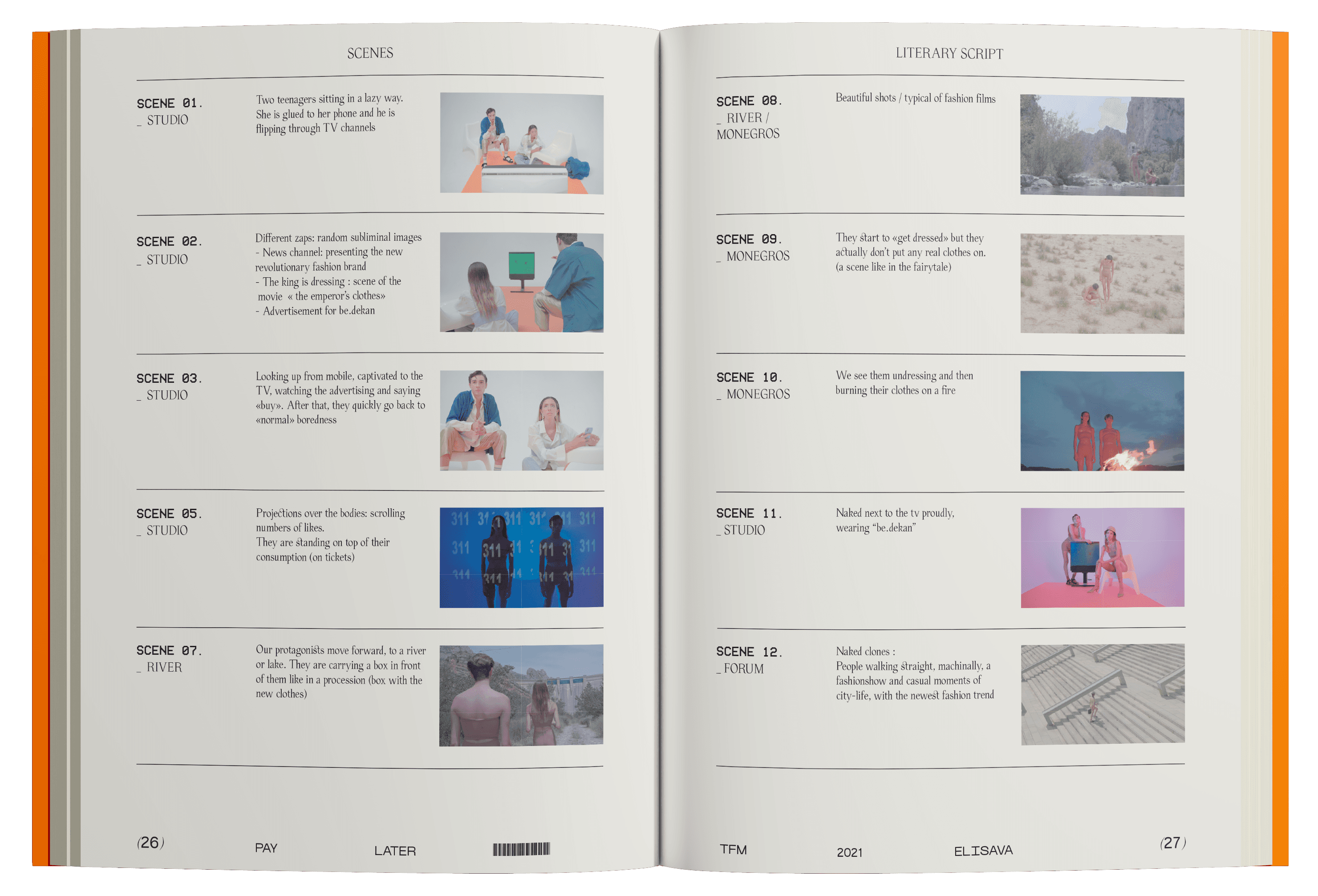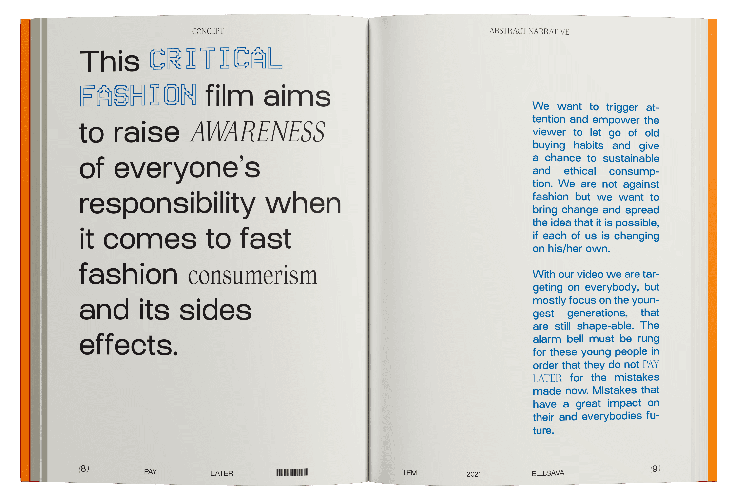 Producción de un proyecto audiovisual libre en grupo. En este caso, el fashion film plantea una crítica al consumo excesivo, inspirada en El traje nuevo del emperador. A través de la sátira y la ironía, se narra la historia de dos adolescentes “manipulados” por una nueva tendencia misteriosa. Un film distópico que invita al espectador a cuestionar sus propios hábitos de consumo.